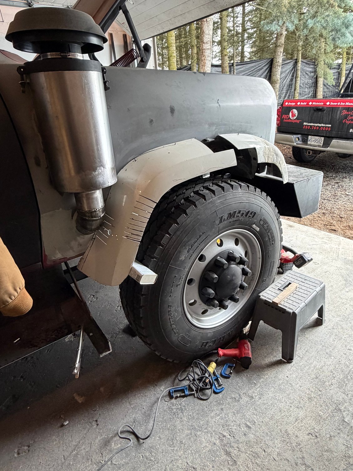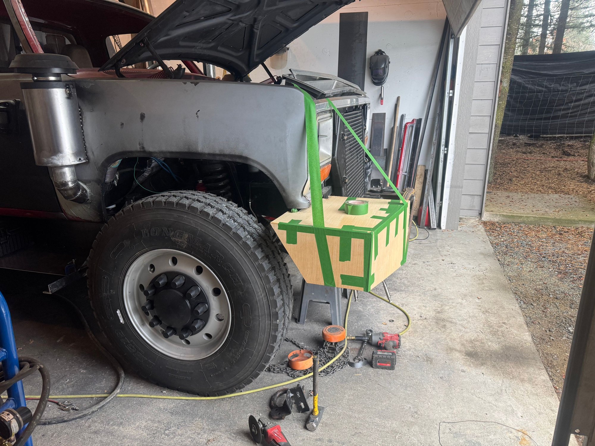Once it is all bolted together and straight, I’ll start working on the fender flares, since the bumper now makes the truck look a little goofy.