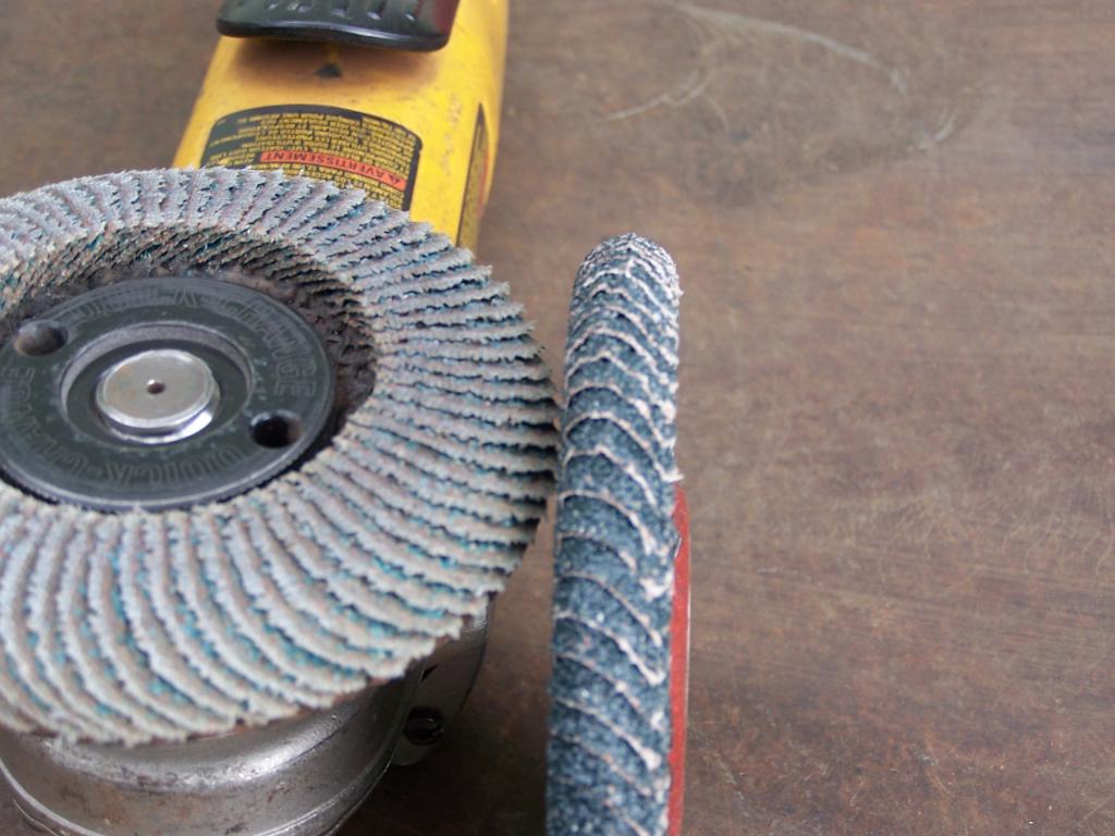 The flapper disk I used this time is made to smooth corner welds. The grit goes all the way around the end and on to the top. They are about 3 times the price of the regular flap disks but worth it. Needless to say I hide it when I am not using it.