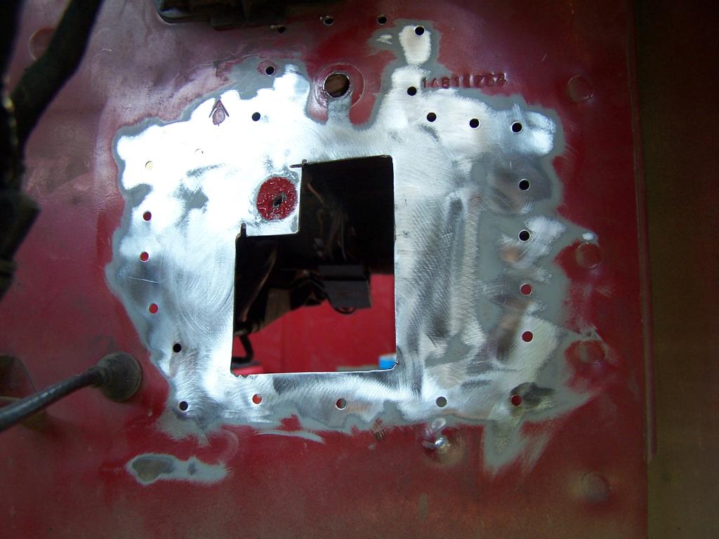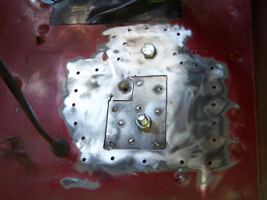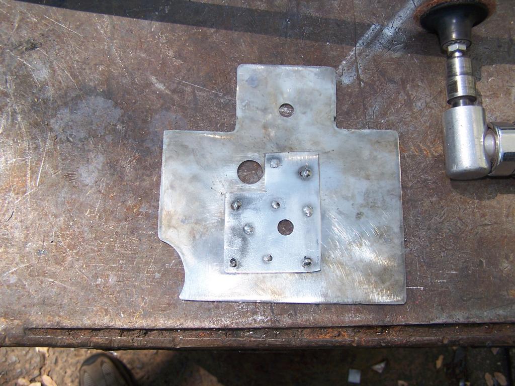 I started looking at the cracked and broken parking brake mounting hole. It was easier to cut it out and start over than fix what I had. Here is the backing plate/ stiffener. and the new replacement part.