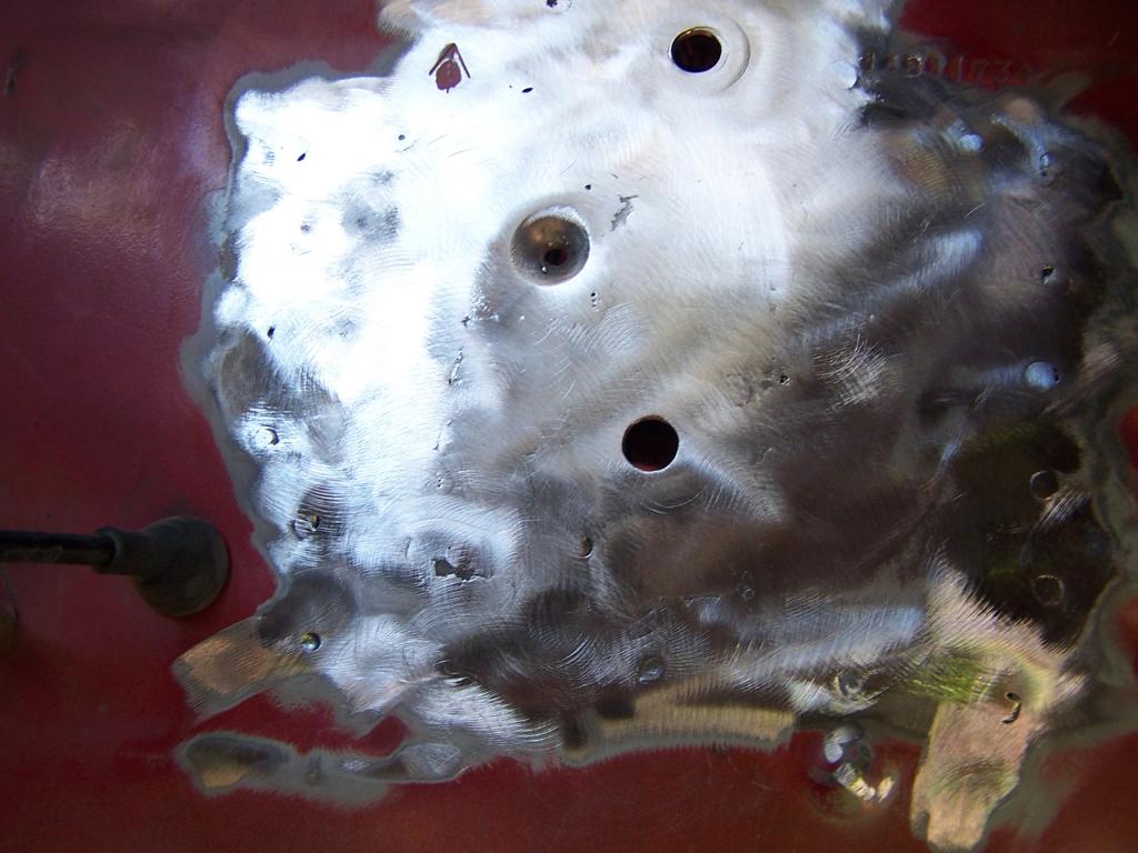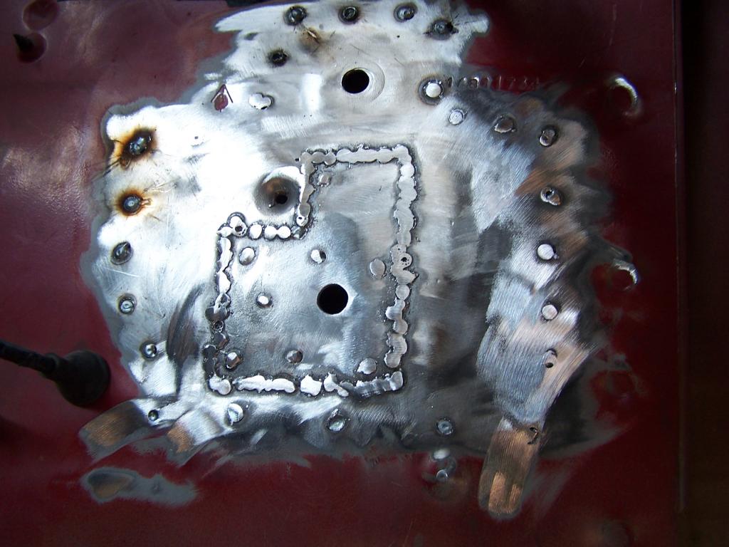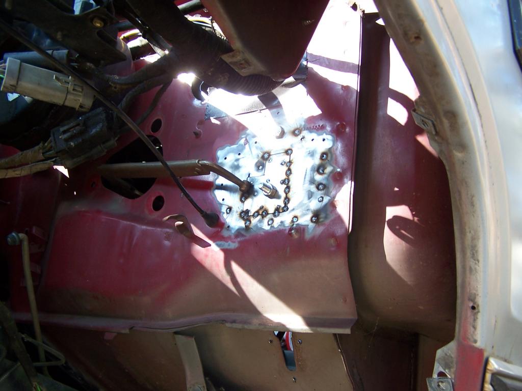 I welded up the firewall patch. It came out pretty good. I was happy to see my local tool store had the 2" screw on sanding discs. That made my day and the job 100X easier.