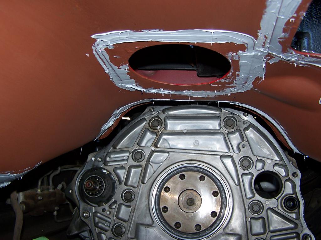 I got the seam sealer spread and put a new main seal in. The next thing is going be hoisting the transmission and transfer case in to drill the holes for the cross-member.