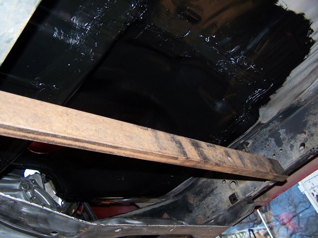 I got the bottom of the floor(trans hump cleaned and treated. I also got a coat of primer on it. Today I will put the seam sealer on. and???