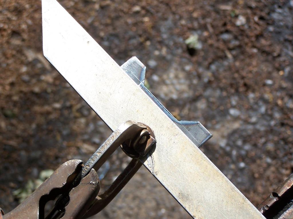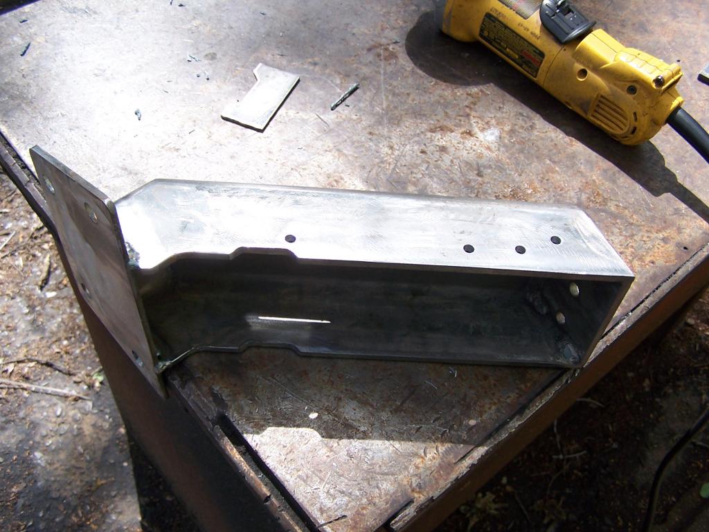 I did a little trimming in my engine cross member today I also made somw gussets to tie the flange in a little better. I made this little jig to make things easier.