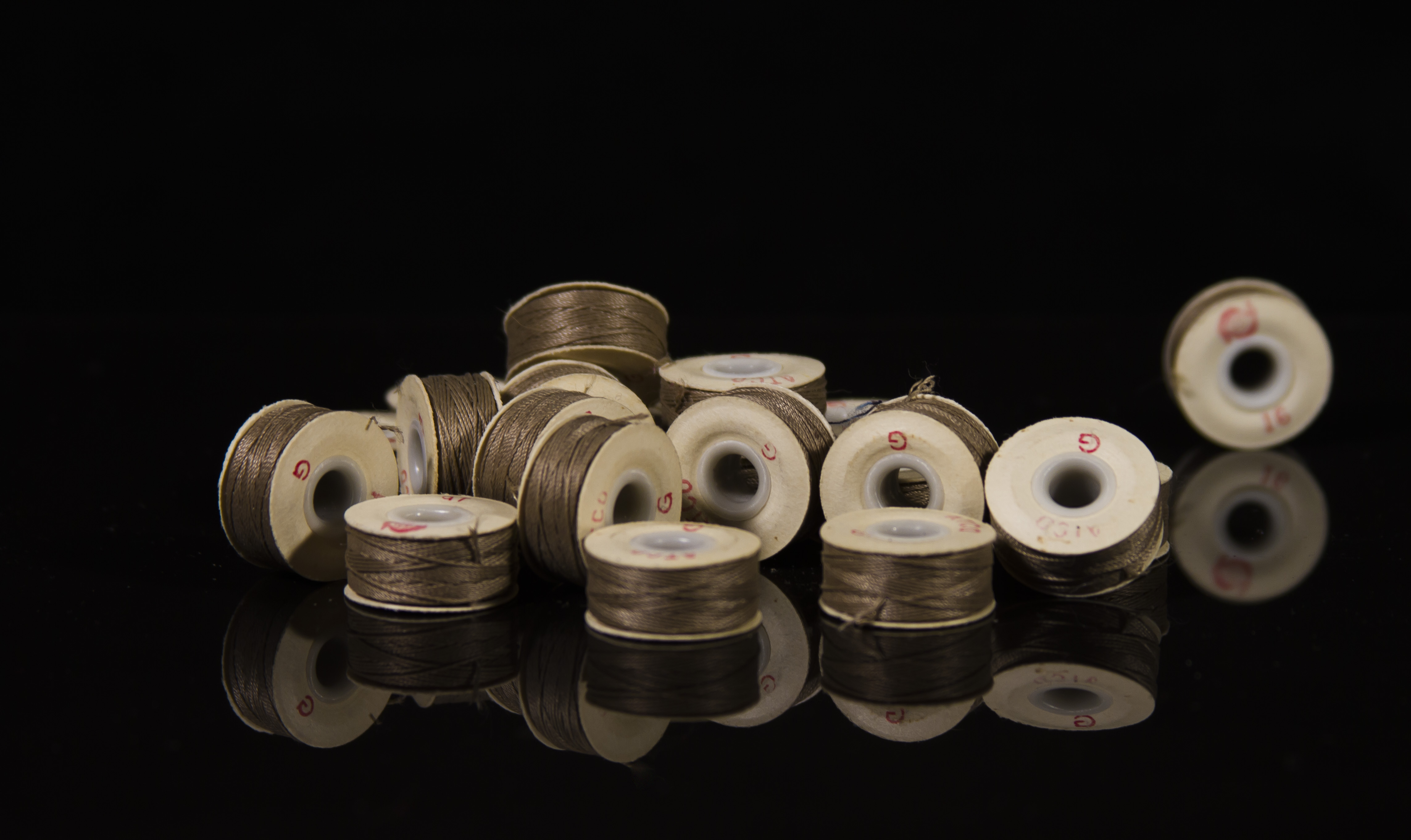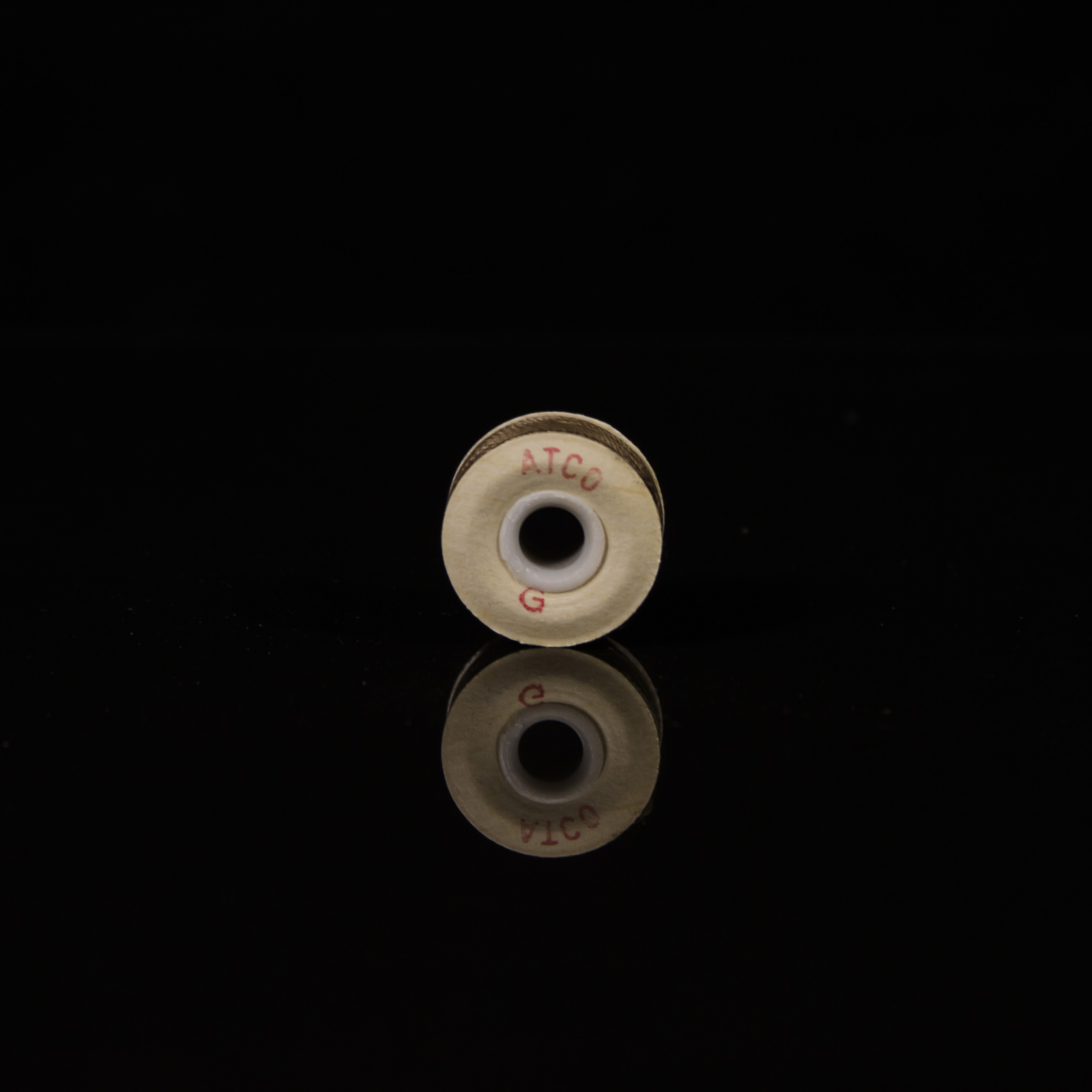 Those are 50year old bobbins of heavy upholstery thread. I don't know what the G stands for though They are too weak to even run in my sewing machine. I kept them to photograph