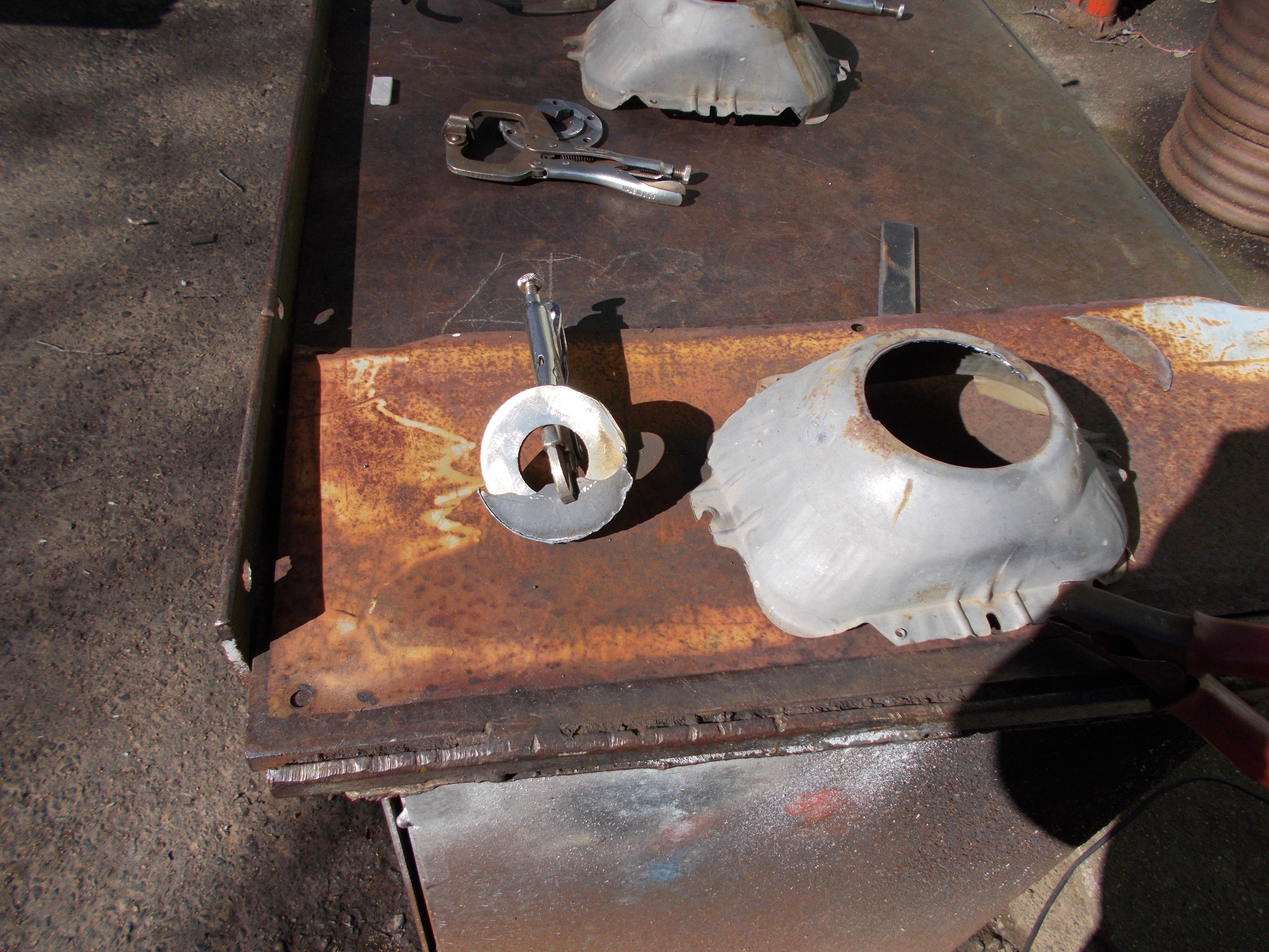First I found a washer the size I wanted 2.75. I figured that would be the perfect size for a guide for the plasma cutter to open up the holes in the buckets. I ended up clamping the washer to the half hole then cut it out.