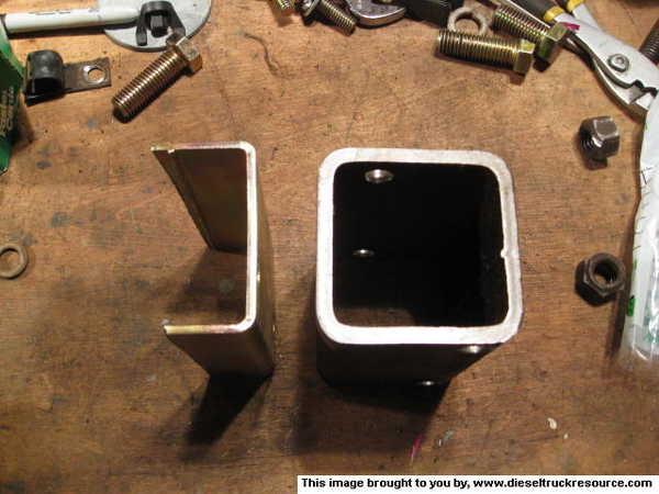 I replaced the chintzy, thin walled, weak excuse for a rear trans mount that came with the AA NV4500 conversion kit with actual 3x3x.25 inch steel tube. I should've done it when I installed the trans but I had misplaced the piece of square tube. I should have milled the slots in the mounting plate on the cross member about a quarter inch longer but it's in and it's solid. The mounting plate is a bit crooked now. Here's a comparison of the old mount and the new one.