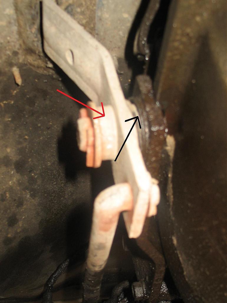 Looks like the bushing at the red arrow is the problem, wiggles around a lot. Also the spring at the black arrow could be worn out. I'll see if I can rig something up and let you know how it works.
