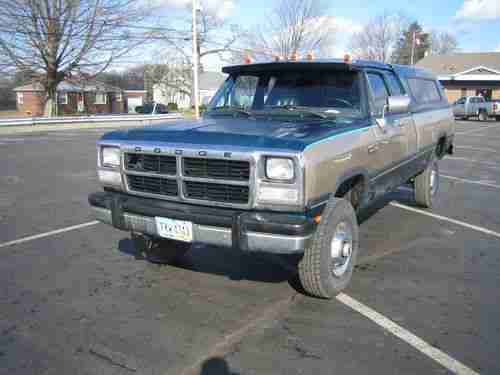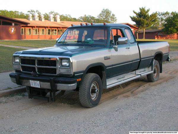 My truck was originally my father's and he ordered it new as solid tan "(Light Champagne"). Several years ago I replaced the bed due to multiple dents and decided I would two-tone the truck while it was in the paint shop -- using "Emerald Green," an OEM color from 1993. Only later did I realize that, OEM from Mopar, the green was available only as a base color and not as a highlight color. So even though my truck has 1993 colors, it is painted in a scheme that was not actually available to order in 1993. That's okay; the truck was in the Turbo Diesel Register calendar (September 2012), so at least somebody thinks it looks decent...
