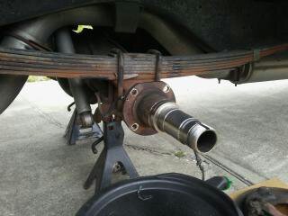 So day two, I took my 12" piece of tubing to my buddies where we cut 6 pieces to 1 3/4 with a chop saw and then trued up both ends and whittled them down to 1.6875 +/- .0005. They fit perfectly. Both outer hub bearings were on their way out so I'm waiting on them tomorrow. In the mean time I bolted everything up to start working on the brake lines and hoses and this is where I'm going to have to cut some corners. My boss called me and offered me a $500 bonus to postpone my vacation and come back to work on Thursday, Friday an Saturday and take those 3 days in the future. So I need to finish this up tomorrow.