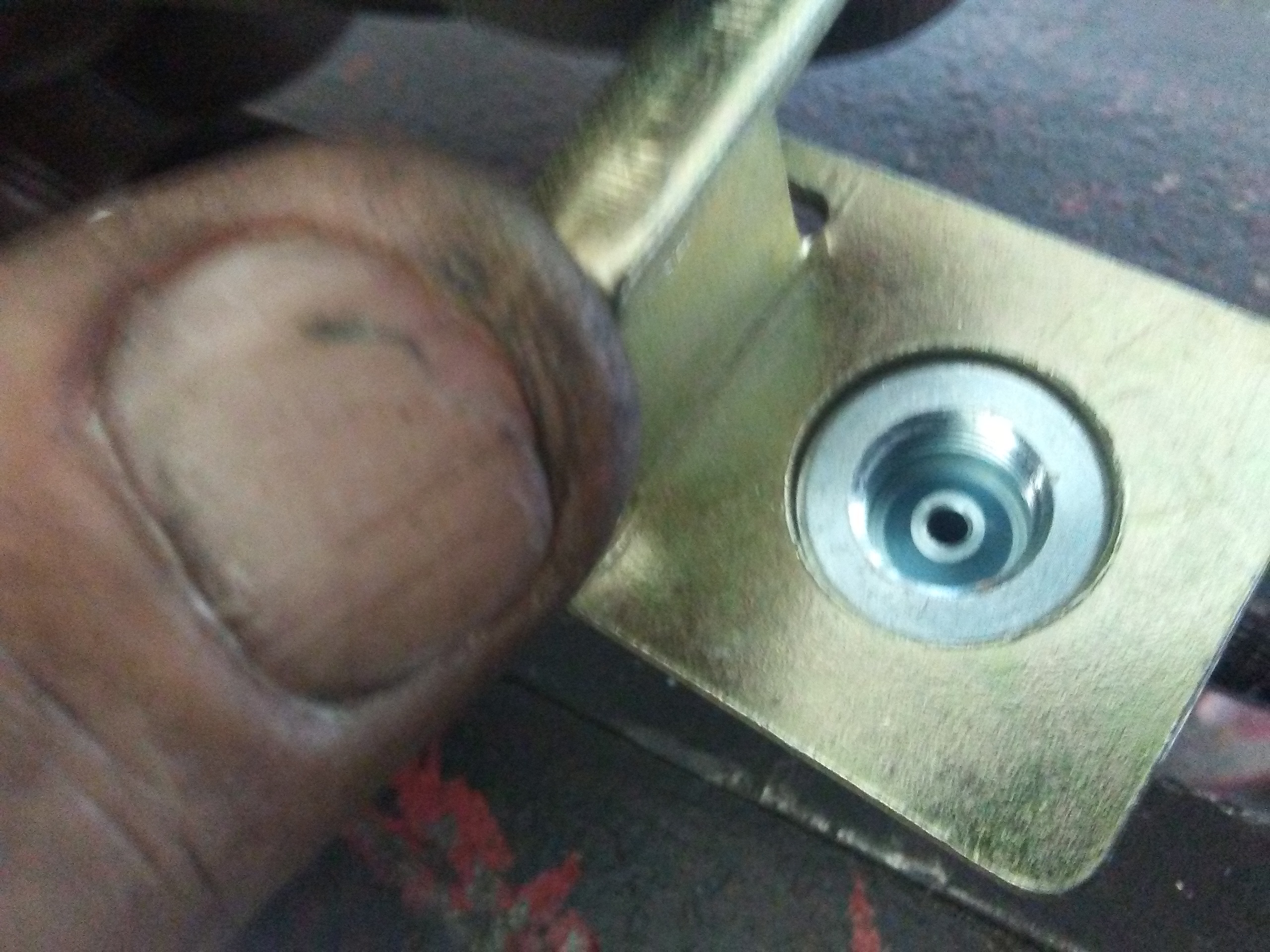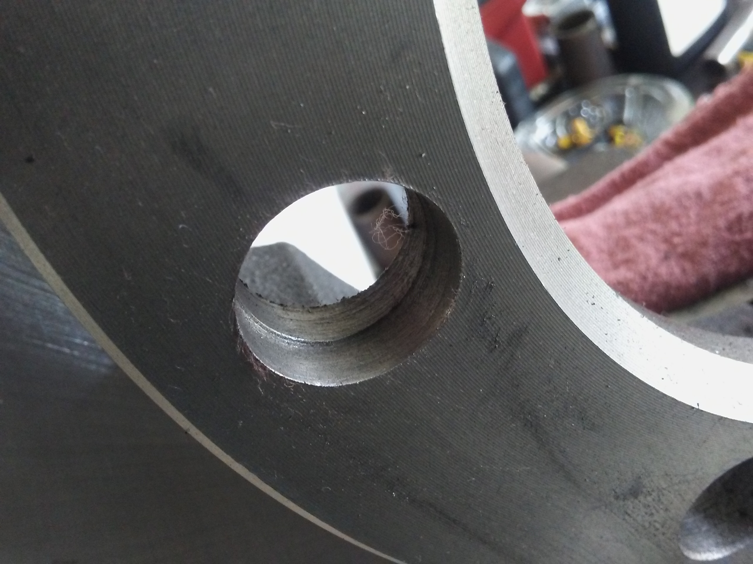 I then chamfered the hole edges so as not to create any stress risers. And used my press with some sockets for spacers to press the studs back in.