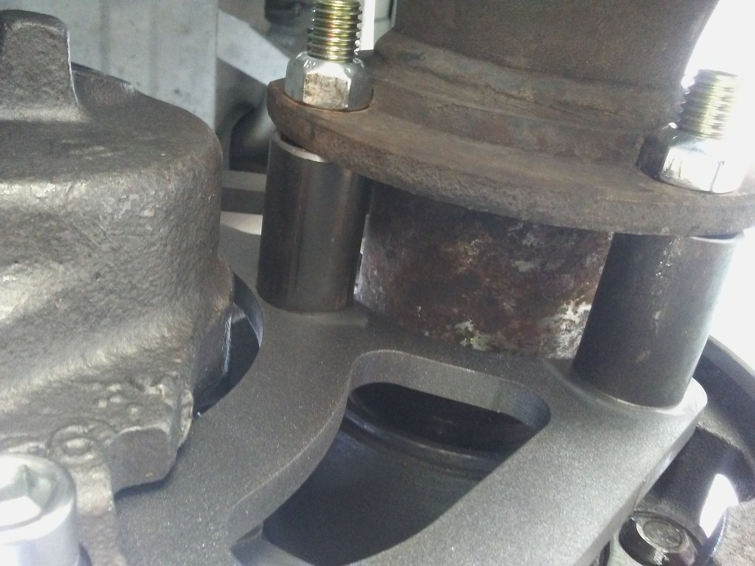 How about welding the spacers to the mounting bracket on the axle? Should limit some flex.