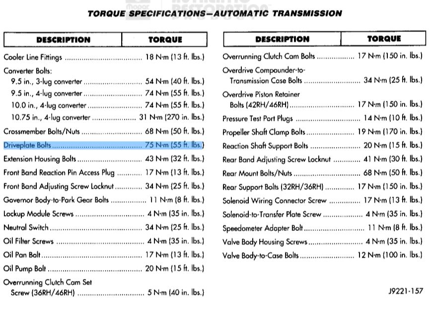 Can anyone here confirm the torque specs for the driveplate (we call it a flexplate) as the numbers I'm reading seem so light.
