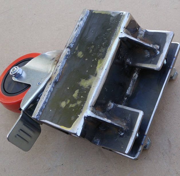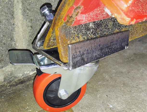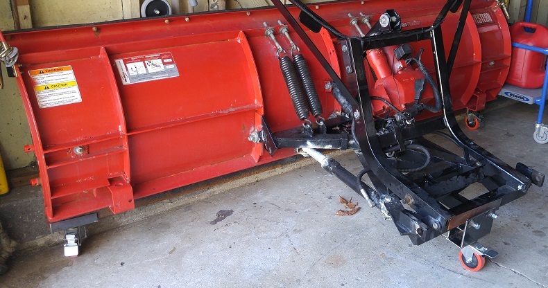 Put my snow plow away (again), and this time, I broke the furniture dolly I used for rolling it around in the storage unit. I can't move the 550 lb beast around without wheels, so I made up my own.