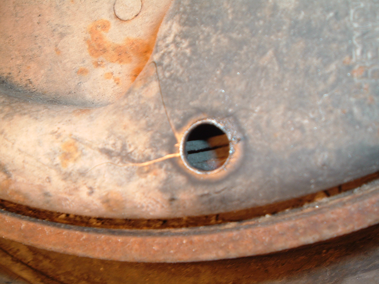 Get a plastic plug then drill a 3/8 to 7/16 size hole, has to match your plug. Not as good as pulling the drum off, but gives you an idea. Mine looks like it is going to need work soon.