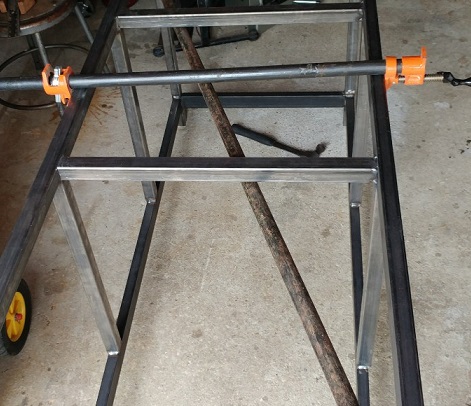 Added supports, final welding and wheels, and it's in my little workshop...