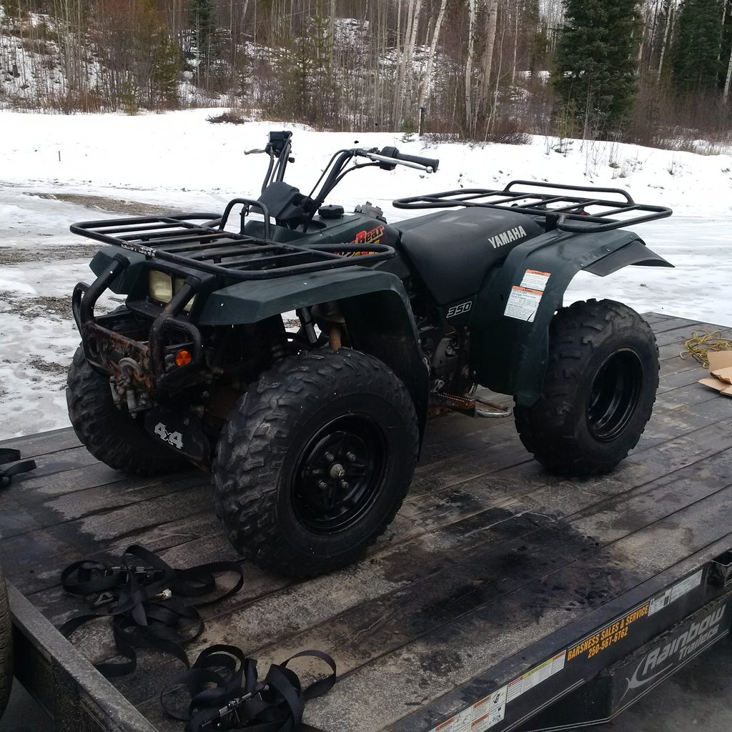 Drove 1100km's yesterday pulling my trailer to go pick up a quad. Been looking for another quad for a few months now but most local stuff is BEAT and over priced. Guy was selling a 96 Big bear 350, original owner and in amazing shape....only issue something internally in the motor/tranny went "ting" and there is metal in the oil. But motor's are easy to fix, and I got it for a great price.