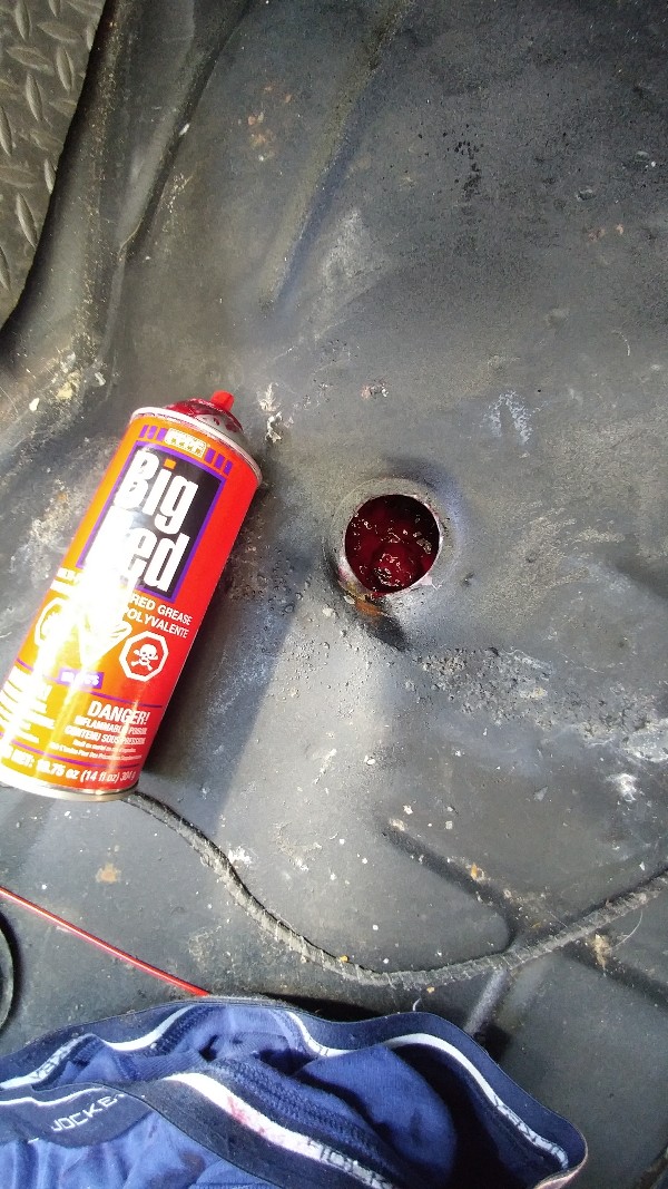 Sprayed grease in there, and closed it up after letting the cabin floor dry out . This is why I have removable rubber mats, so I can easily retain solid floorboards.