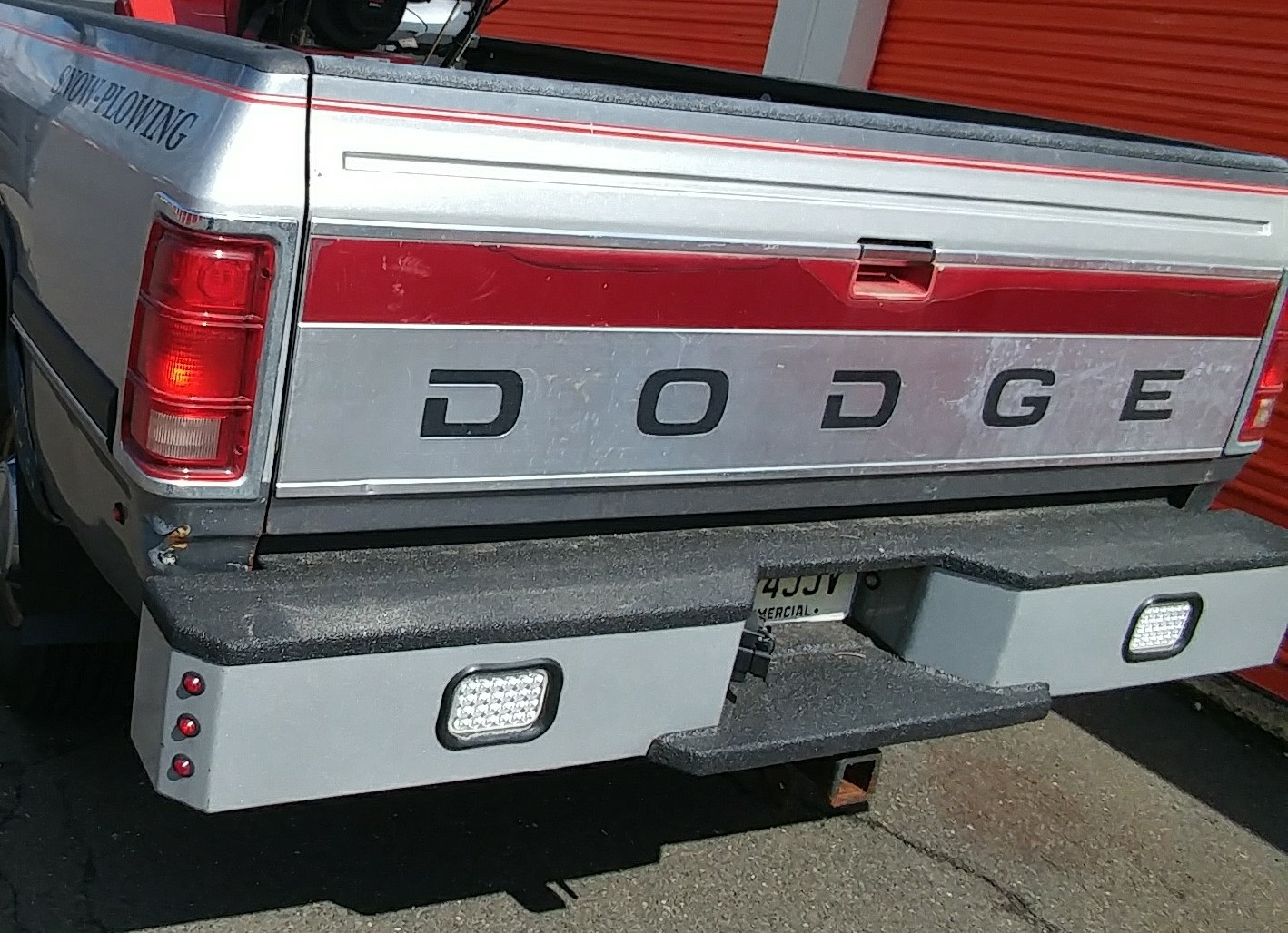 For the rear I decided to follow this guy's example (black truck isn't mine) and I tracked down a nice Ramcharger bumper complete with brackets. I'll probably fab a similar cover to hide the hitch as well, I really like this look...