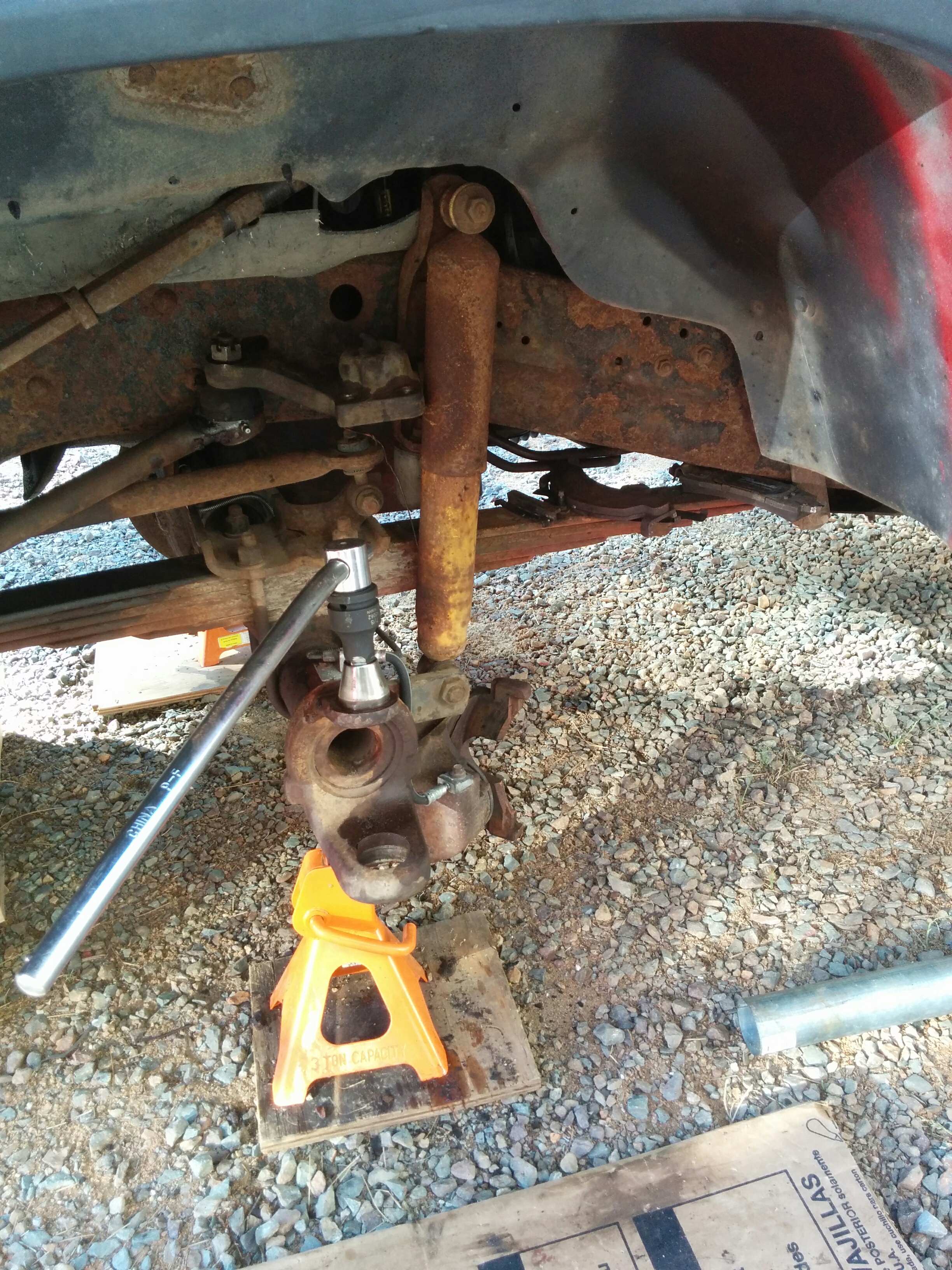 Yup, I used a long 3/4" breaker bar with about 8 feet of leverage from 1 1/2" 1/4" thick square tubing, for around 10' of leverage. Tman is right, watch your knuckles, when mine broke loose, they then threaded out by hand. IIRC, the king pins are factory torqued to around 900 foot pounds...Msrk