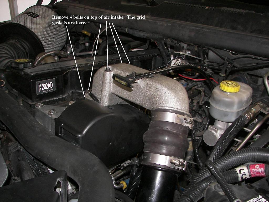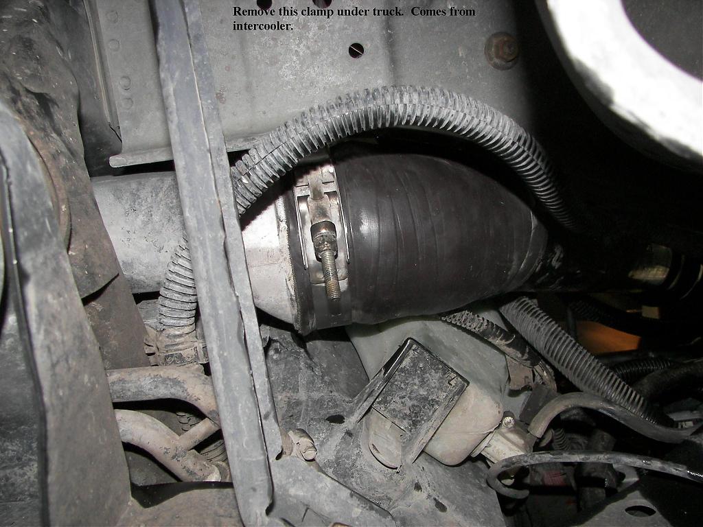Remove the air intake from the intake manifold. Loosen the clamps on the hose that connects the air intake to the intercooler tube.