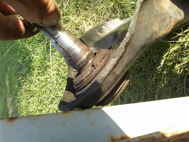 Rebuilding the frontend on the 99 stage 2 DRW independent front and ran into a puzzler on my lower ball joints. They have snap rings on both upper and lower sides of the A-frame and I don't know which direction to press them out and the new ones in. Anybody know which way they go? Top down or bottom up? I can't tell by looking at them. The bottom is the side the taper pin is on in the pic. Thanks