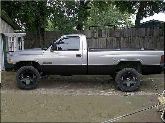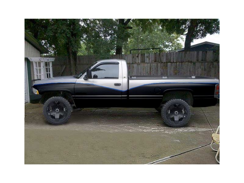 I like the red accent. Try breaking up the first pic with a red line that pulls off the black and maybe gets up behind the cab a little.