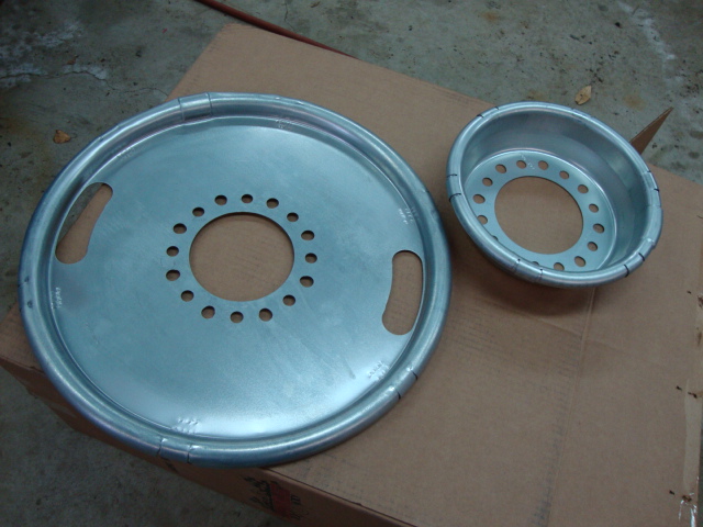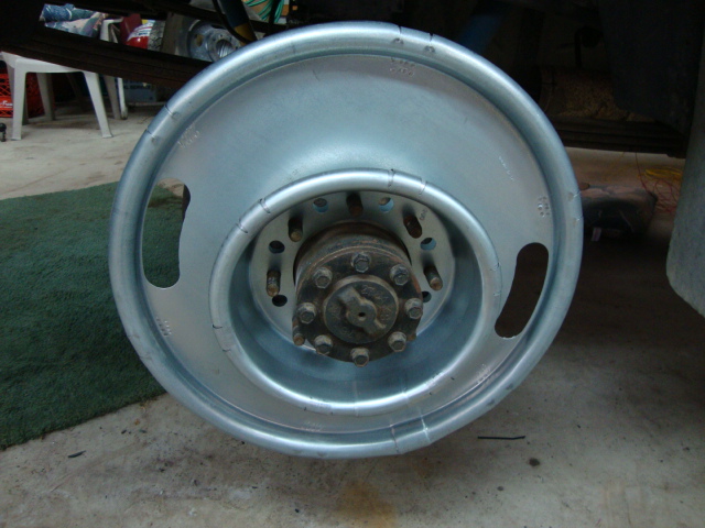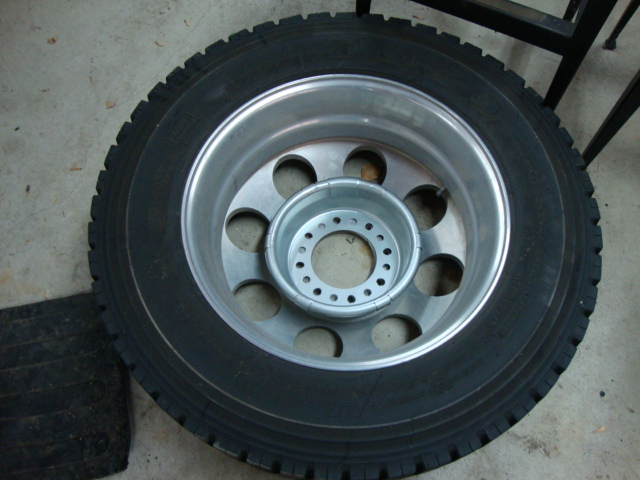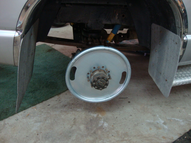 Centramatic's came in, WOW big difference from fronts which are standard for the 17" stock wheels and they say will be fine for my 19.5" to the rears for 19.5" wheels. Found great price on them from a place in OH. The front pic is just sitting in one of my rear wheels for the camera.