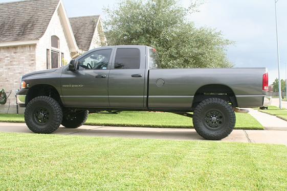 I just installed a 6'' superlift on my 03 2500. I'm running 37'' toyos on 17'' wheels with 4.5'' of backspacing. I had to trim some plastic from the air dam on the front bumper, because it rubbed slightly. I wouldn't try running 37'' tires with a smaller lift unless you stay with the stock rim, or a rim that has factory backspacing specs.