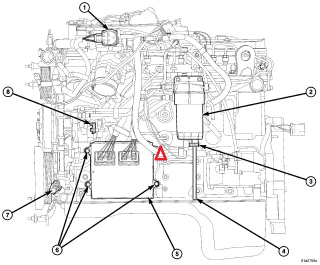 Thanks BigIron. Haven't got a pic yet. There is a bundle of wires that is right above the red triangle in your picture. The wire I'm talking about comes out of that bundle. The bundle of wires goes a few different directions so I can't trace the wire. Any thoughts.