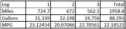 Anyhow before this I had only seen 19.9 MPG whereas this trip from Dallas, TX to Salem, IL I got 23.1!! I thought to get anything over 18, I was doing awesome, but 23 is insane in my book