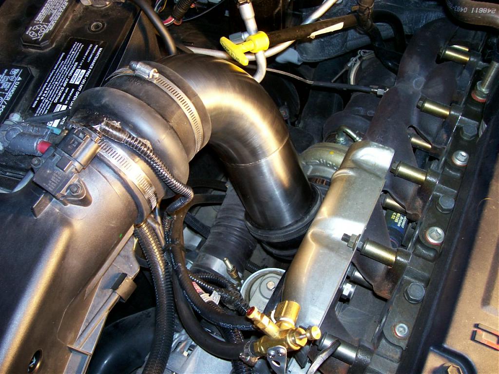 I just used a few pieces of 4" polished stainless laying around the shop. 2 90 degree elbows, one short piece of straight and there you have it.