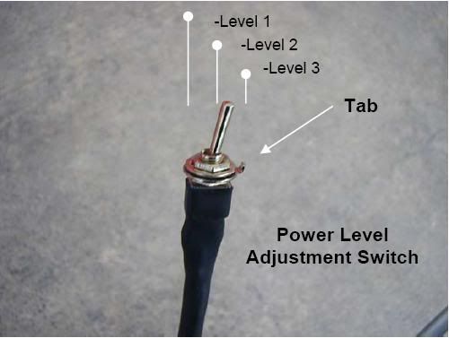 Ok I sold my edge ez (04.5+) to a friend and I cant remember what way is all the way up and which is down(3 setting) On one side is a little tab on the switch, is this all the way up??