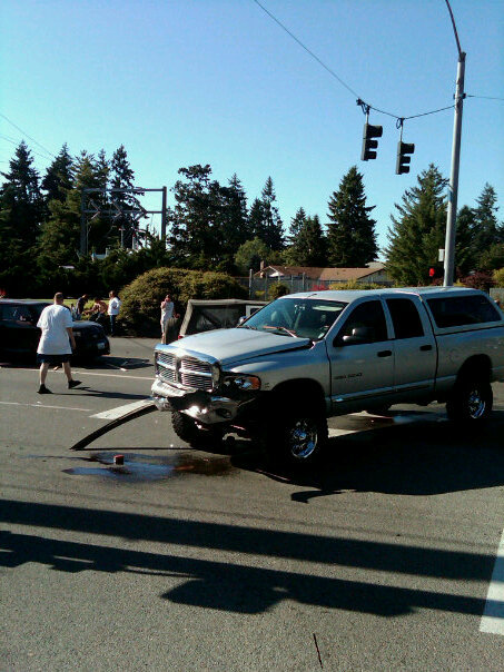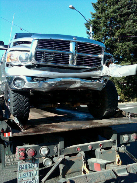 Was hit by a red light runner - Frame swap and $$$$$$ later she lives again...the chevy s-10 that is upside down is the truck that hit me - guess he was confused and thought he had RAM POWER!!!!