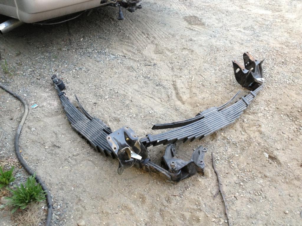 Alright, so last week I tore into the rear suspension and a buddy tore into the front suspension. I got all the leaf springs off, hangers, and mounted the front suspension mount. Buddy got the passenger spring out and tomorrow I will take off all day and start to put more parts on and hopefully finish.