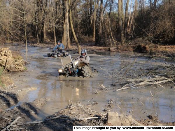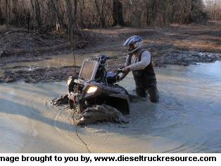 Yes it was deep (4 feet), and no I didn't get stuck. I was going through in 2wd and thats why the front wheels are up like that. If I was in 4wd, I would be leaning up on the bars to pull the front down....water wheelies are FUN!! The consistency of that mud was like pancake batter when its really runny.