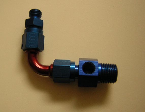 This is 12mm x 1.5mm weber carb (vp44) to -6an adapter, -6 an female 90 degree -6an female, -6an male to 3/8" npt male with 1/8" npt fuel pressure gauge port