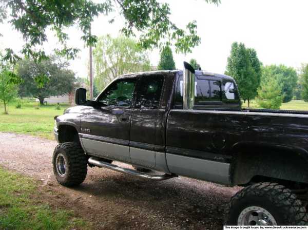 I have two black 5 inch stacks and i dont get why people dont just run two instead of one. My personal opinion no offense or anything but is that one looks kinda dumb but ur truck looks good tho.