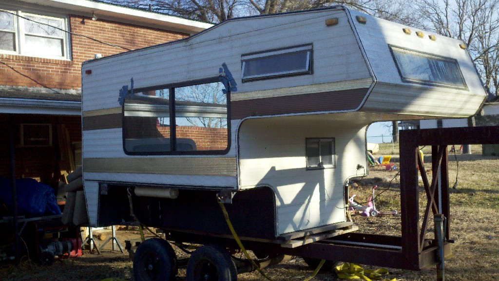 Picked it up off a craigslist for $200. The roof needs resealed and most of the paneling on the inside needs replacing, but the majority of the framing is good and it came with all the jacks and the Troklift tie downs. Looks like I will busy for the next few months. Weight unloaded is 1800 pounds. My plan is to update the entire inside with new wall coverings, oak cabinets, and new electrical. If anyone has any advice or tips I am open to it.