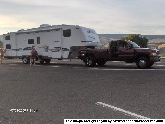 Finally snapped a picture of my coached coupled to the truck. Picture sucks but I never seem to have a camera handy to take a good one...