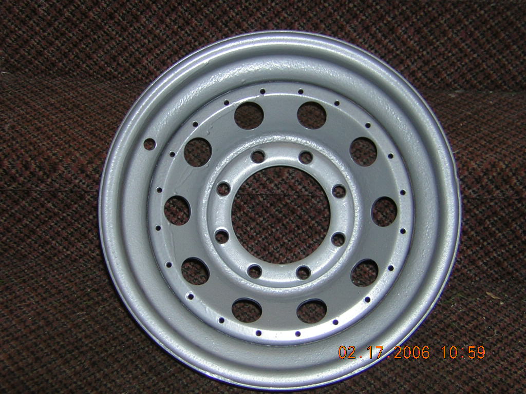 This wheel was completely rusted over and has 1 coat of Rust Bullet. Unfortunately I am an awful painter and you can see huge clumps of overspray.