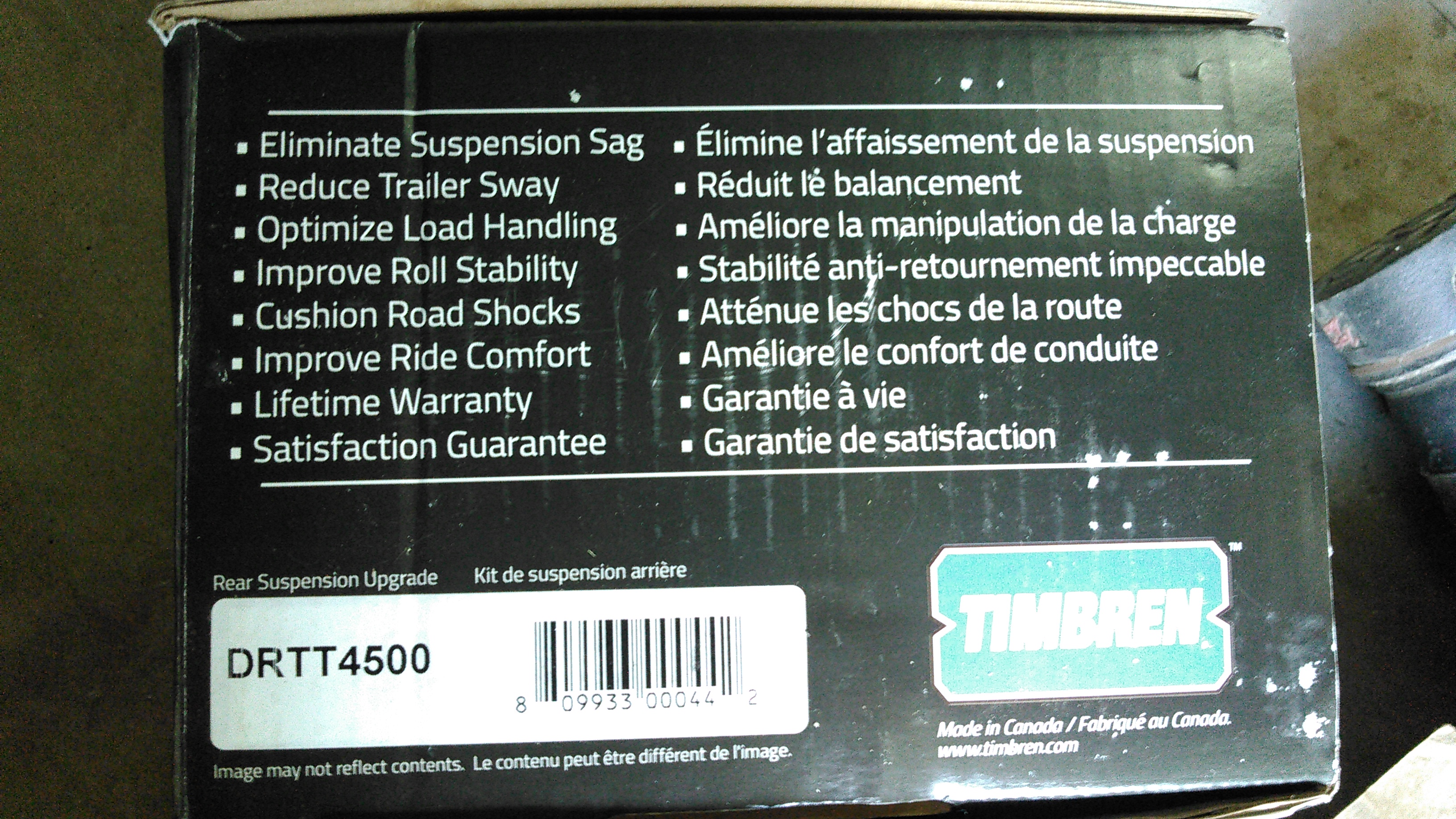 Also, I was going to buy two new trucks but did not so I have an extra set of Timbren, brand new in box for 2016 4500. $250 shipped CONUS